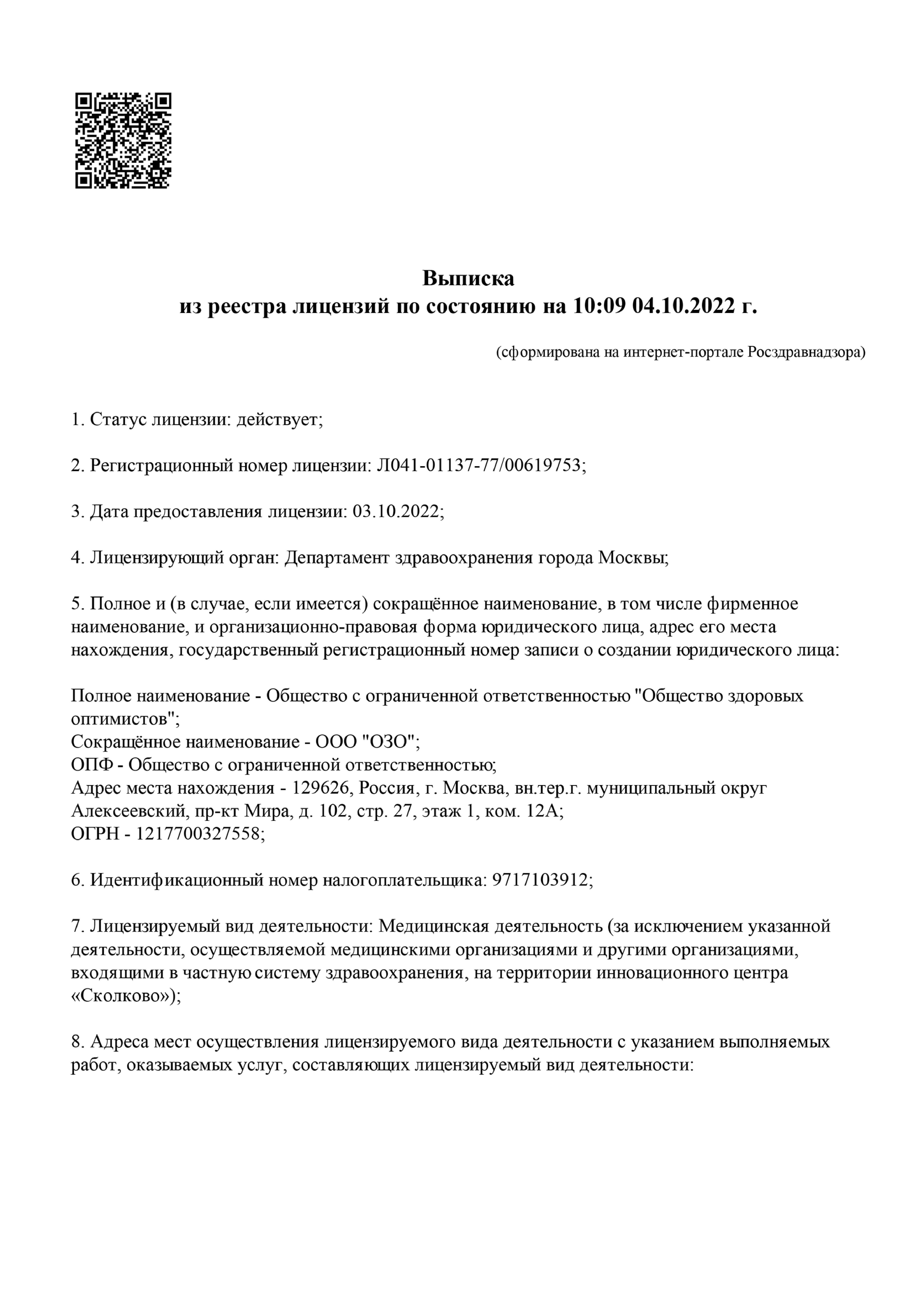 Вся представленная здесь информация получена из открытого публичного общедоступного источника. Если вы являетесь владельцем или официальным представителем мед.клиники "Общество Здоровых оптимистов", вы можете удалить эту страницу.