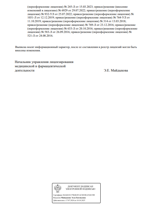 | Отзыв от пациента Наталия |