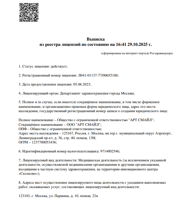 К сожалению, пока у нас нет ни одного отзыва о клинике Стоматология Art smile (Арт Смайл) в Москве. Будьте первым!