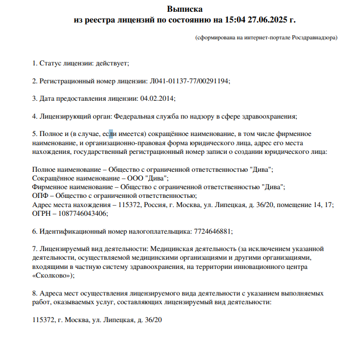| Отзыв от пациента Надежда |